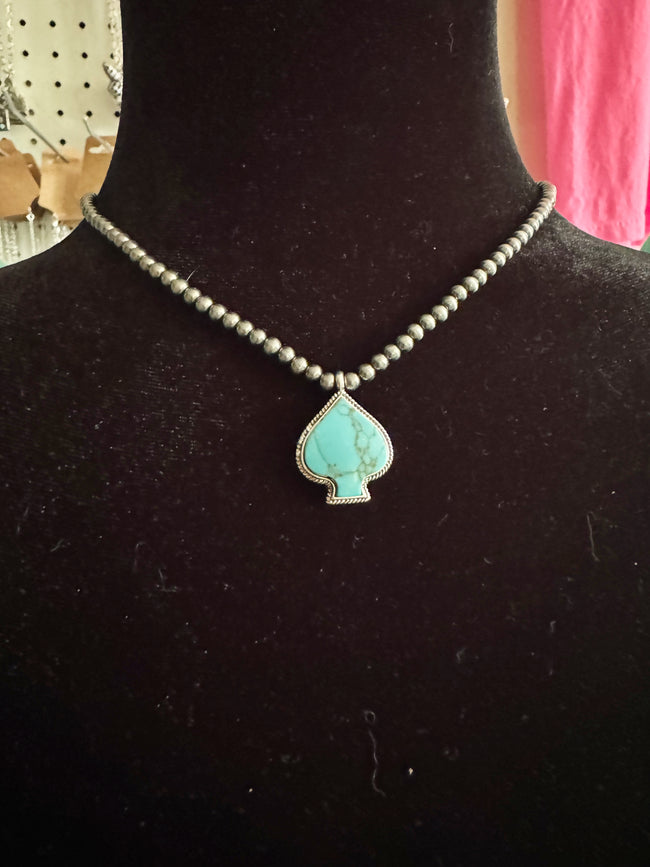WESTERN CHAIN TXR SEMI STONE NECKLACE - SILVER / TURQUOISE