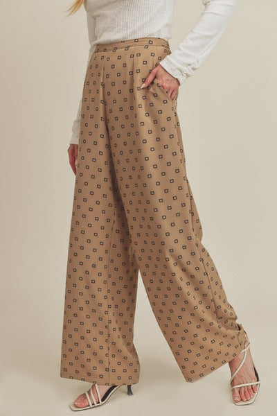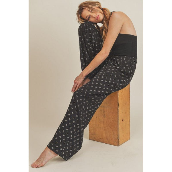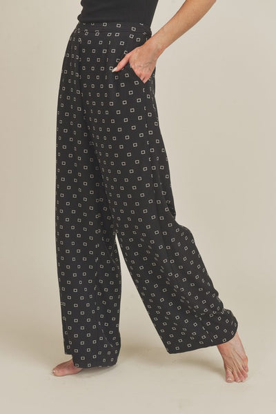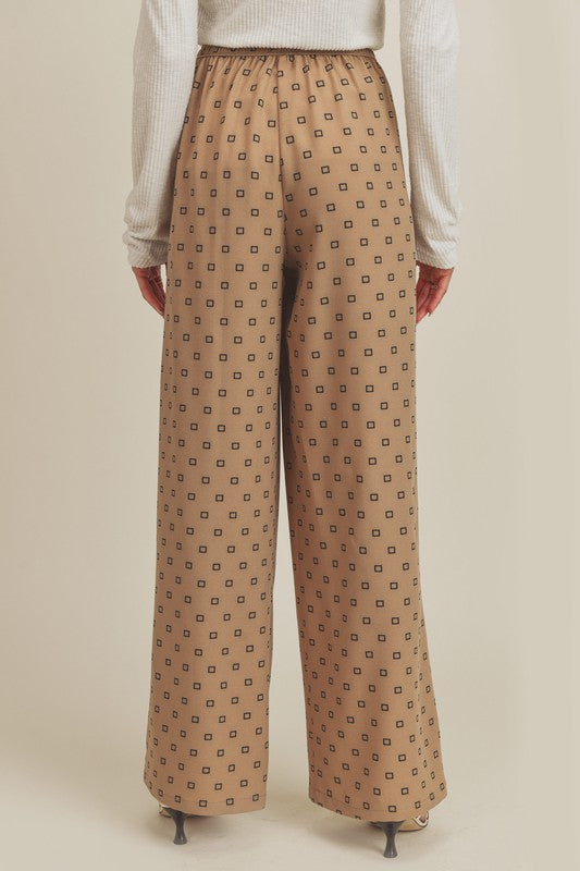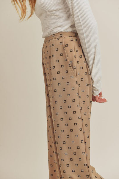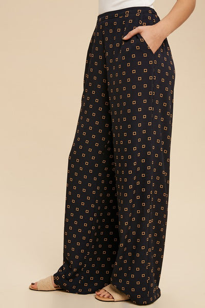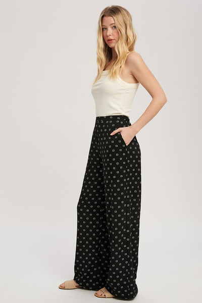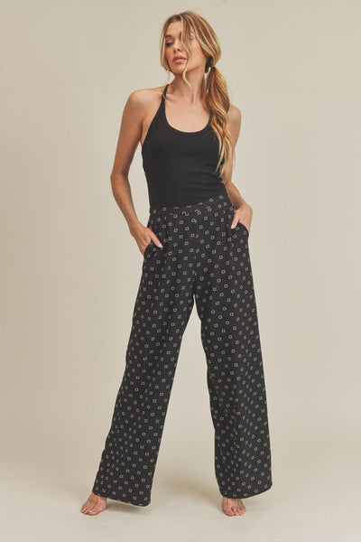 The Lucy Pant is a wide leg pants that has elastic in the back so she's easy to get in and out of.